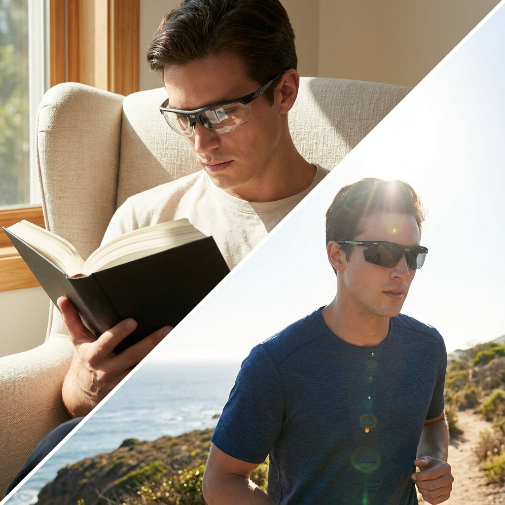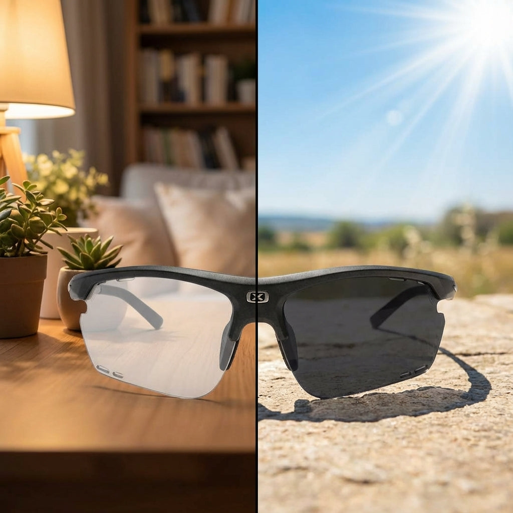 ⚠️ Important to know: the speed of darkening and clearing is affected by ambient temperature. In cold weather, lenses reach a deeper darkness but take longer to clear. In hot weather, lenses may not reach their maximum darkness but will clear more quickly.