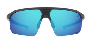 דגם Mustang 6029 צבע מסגרת אפור מט כהה עם עדשה אפורה פולורייזד בציפוי מראה כחולה, אידיאלי לנהיגה ,סקי וכל פעילות ספורטיבית