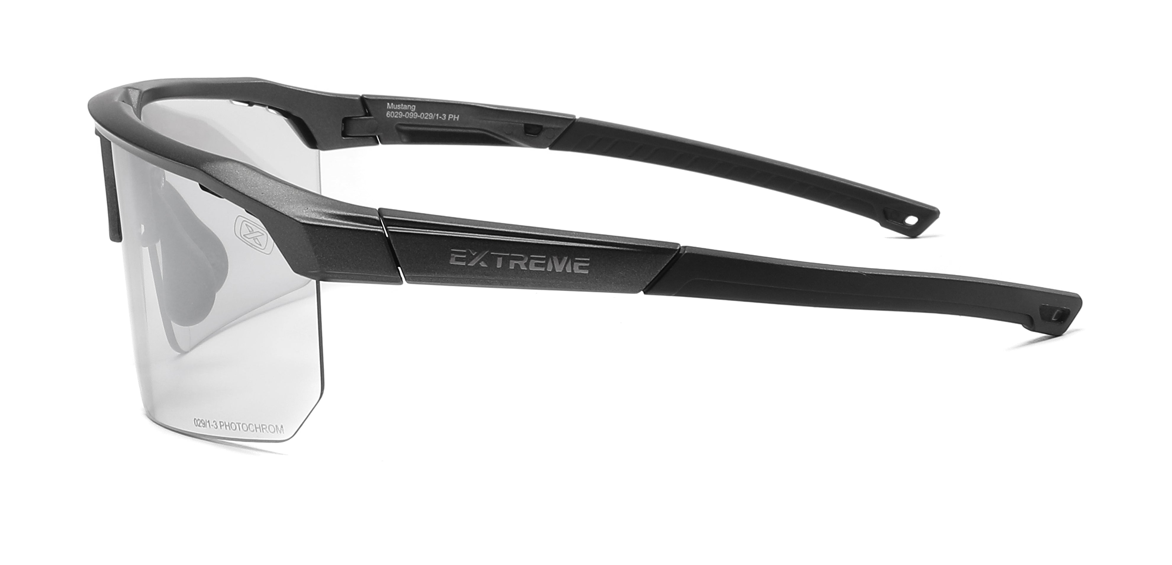 דגם Mustang 6029 צבע מסגרת איירון בלאק מט עם עדשה PHOTOCHROM אפורה מתכהה בשמש לאפור כהה בציפוי מראה כסופה , במקום מוצל 35% כהות ובשמש חזקה העדשה מתכהה ל85% כהות. אידיאלי לפעילות ספורטיבית , מאוד נוחה לשימוש בימי בחורף.